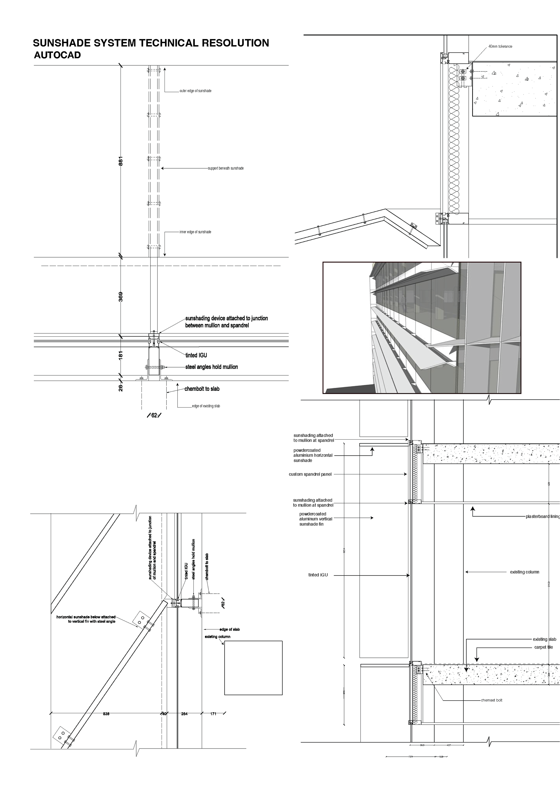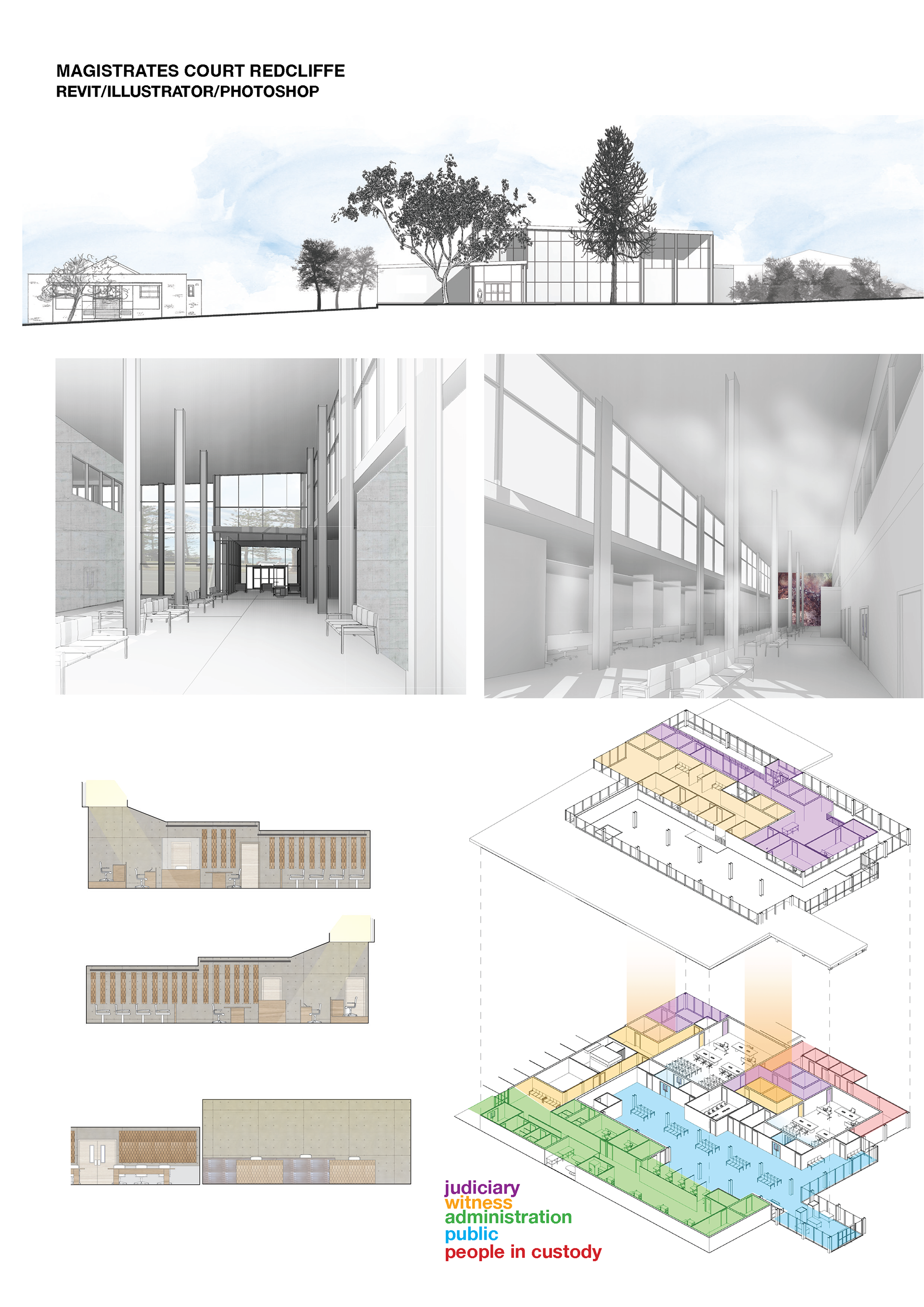 Sample from the Bachelor of Architectural Design at the University of Queensland, completed 2013. Projects span design development and technical documentation, produced in Revit, AutoCAD, Illustrator, and Photoshop.