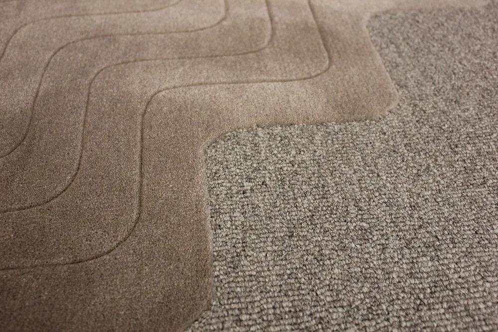 Transit investigates movement through linear systems and directional pattern. The design is intended for area rugs and large scale carpet installations where pattern guides circulation and spatial orientation. The composition balances bold geometry with controlled repetition.